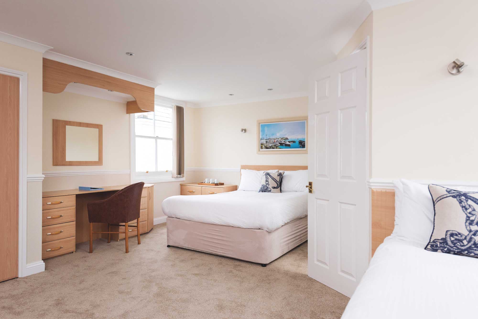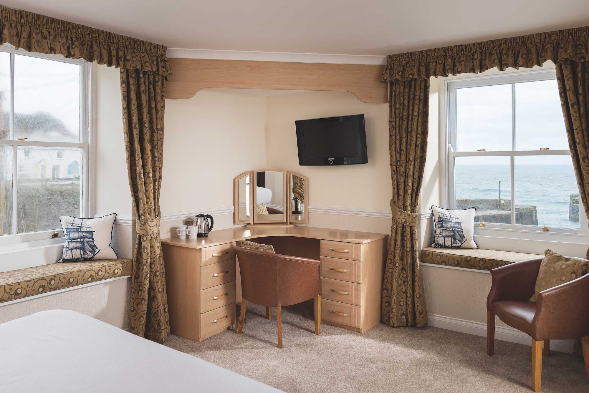 The accommodation comprises 27 bedrooms, where a warm and elegant decor complements a collection of quirky nautical touches. You’ll find original stone walls and wood panelling lovingly paired with mod cons, new traditional timber, and limestone flooring. Relax in one of the Superior rooms, where stunning views of the harbour and ocean are best admired.