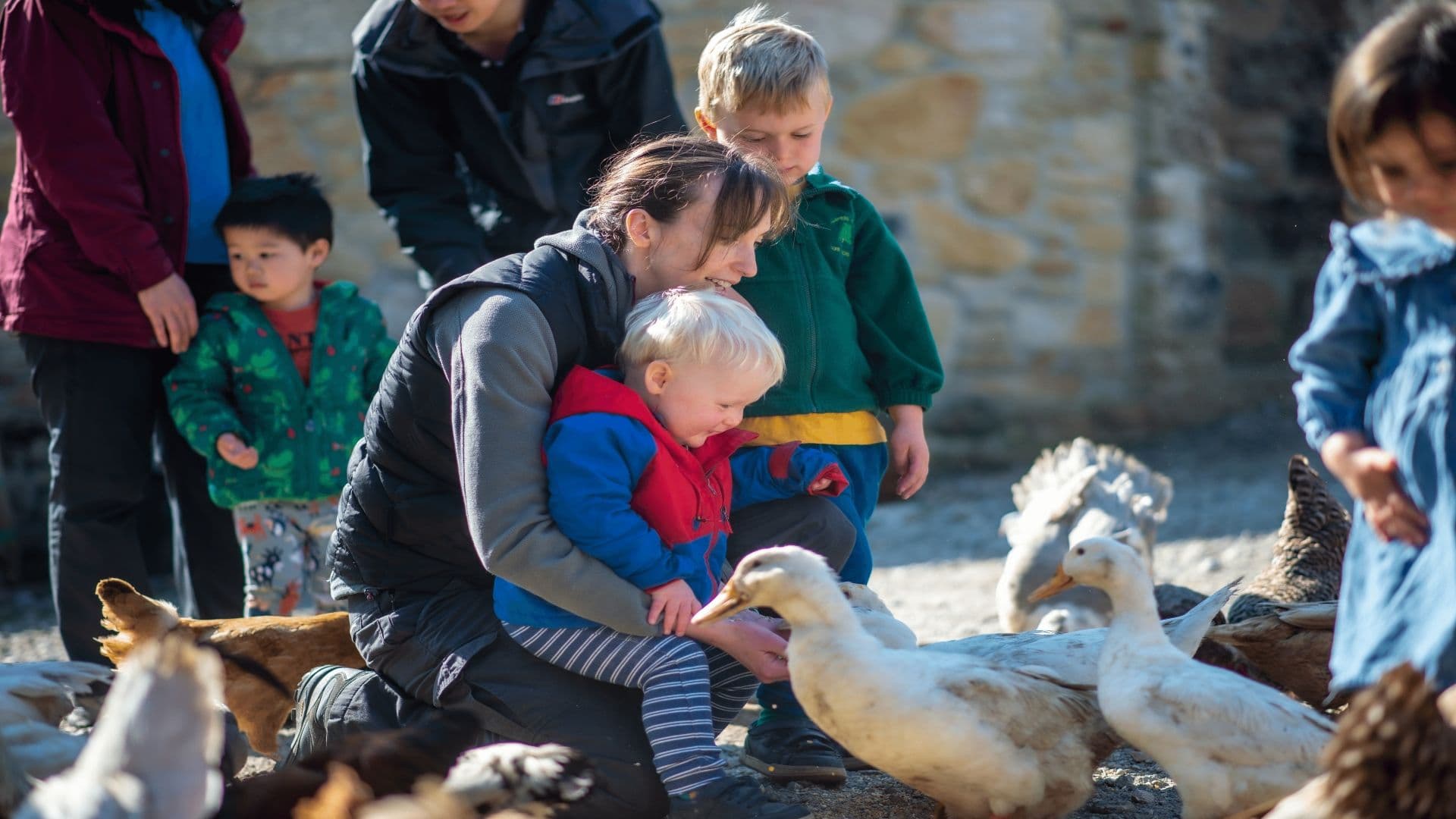 Daily animal feeding sessions and egg-collecting with Farmer Dave