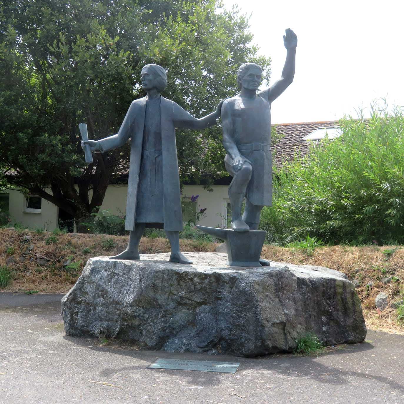 This statue in St Keverne commemorates The Cornish rebellion of 1497 which was started in St Keverne by a blacksmith called Michael An Gof and a lawyer from Bodmin Thomas Flamank. They were protesting in response to the raising of war taxes by King Henry VII who had also recently stopped the legal operation of its tin-mining in Cornwall. They decided to form an army and march to London.