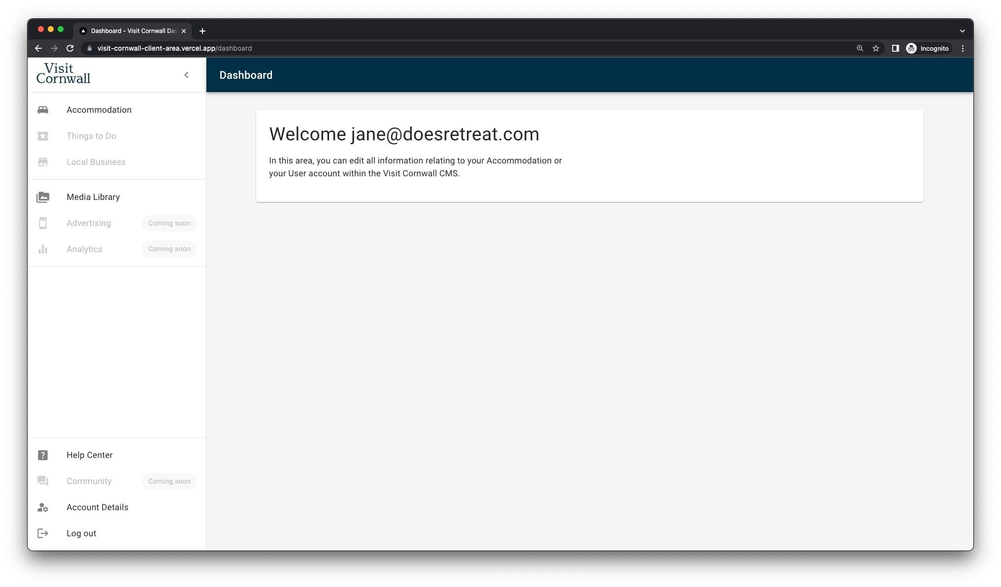 Let's start by navigating to the Members Area login page. This can be found in the footer of visitcornwall.com. You can also bookmark the members.visitcornwall.com for future reference.