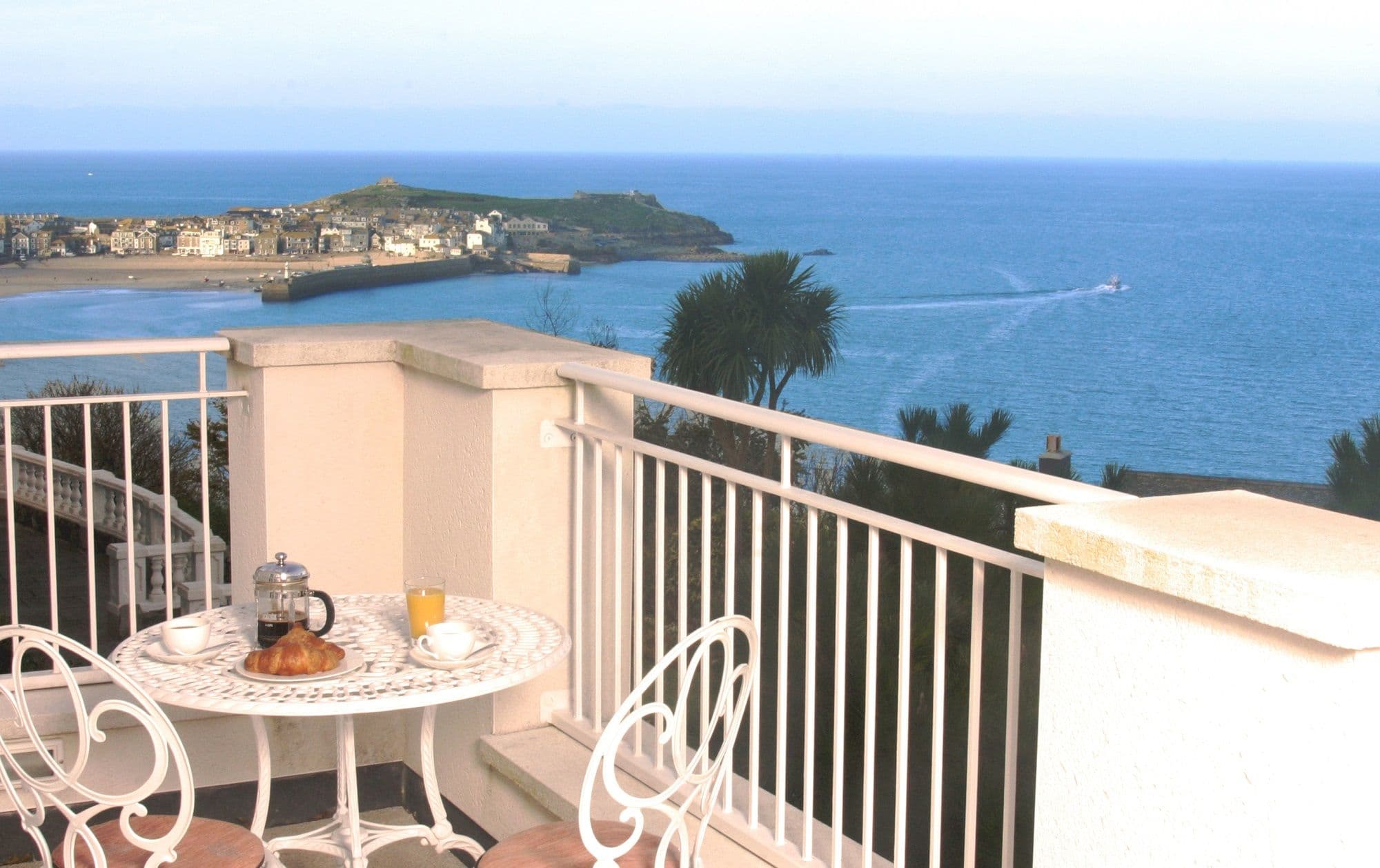 Wake up to sweeping ocean views where the sunrise lingers and the sunset glows. Sip champagne on your private terrace, surrounded by tropical palms and endless seascapes, high above the stunning St Ives Bay.