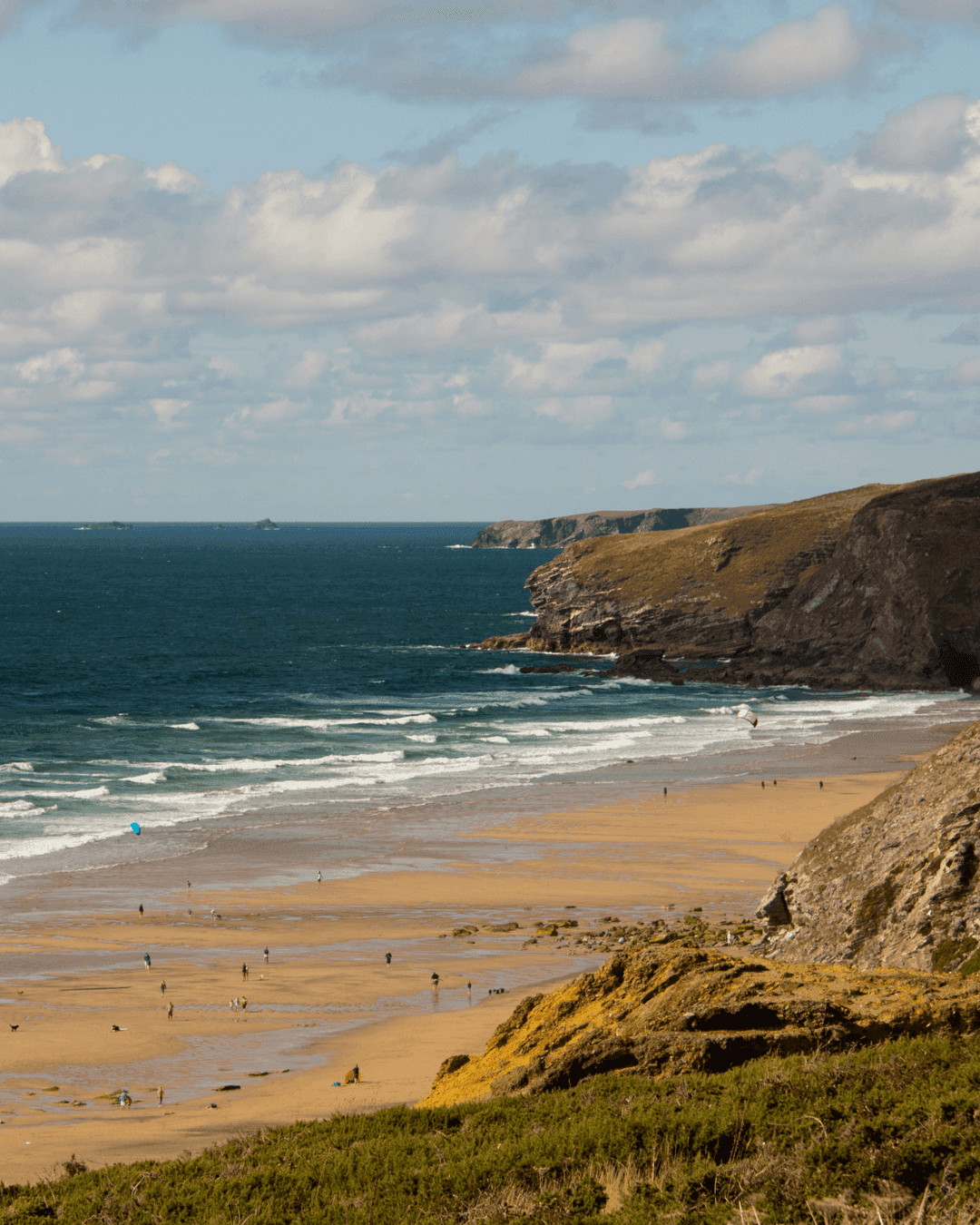 Watergate Bay is vast stretch of sand, big Atlantic swells, and high sea-beaten cliffs; a dramatic landscape, it’s one of the county’s wildest coastlines and considered by many as one of Cornwall’s best beaches.