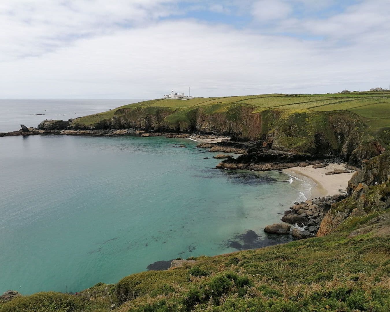 There are great views back towards Lizard Point as you make your way around the bay and out towards the headland known as Pen Olver. The two black huts just to the left of the path are Marconi’s Signal Station, from where the inventor sent a wireless message 200 miles to the Isle of Wight in 1901. If you are lucky the hut will be open to visitors. This whole area is full of communication history. Across the bay ahead of you sits the Lloyds Signal Station, it was from here 30 years earlier than Marconi that messages were sent by signal or wire to London to tell owners their ships had made it safely back into British waters.