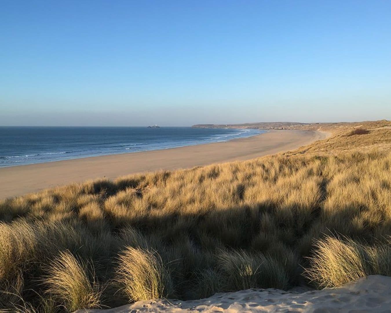 Mexico Towans forms part of a glorious four miles of sand that starts from the mouth of the Hayle estuary and reaches out to the lighthouse at Godrevy Point. Situated between Hayle Towans and Upton Towans, the beach is backed by magnificent sand dunes, or towans as they are known in Cornwall.