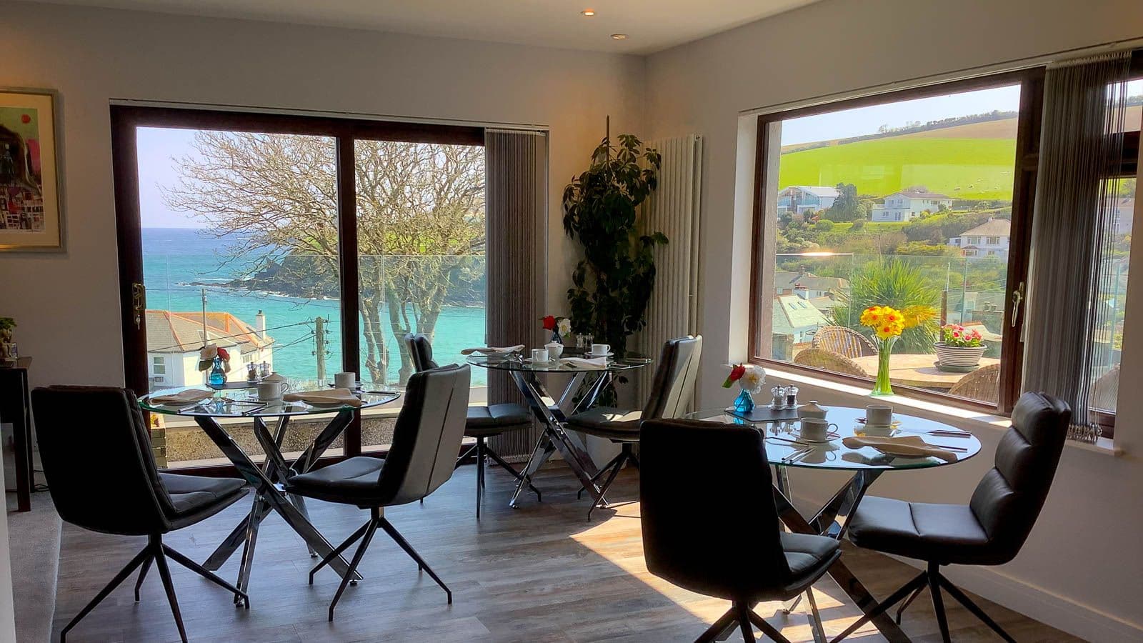 Award winning, modern, licensed guest house overlooking the quiet, beautiful, sandy cove of Portmellon near Mevagissey. All three ensuite rooms have spectacular sea views and private access to the beautiful garden. Free parking. Free wi-fi.