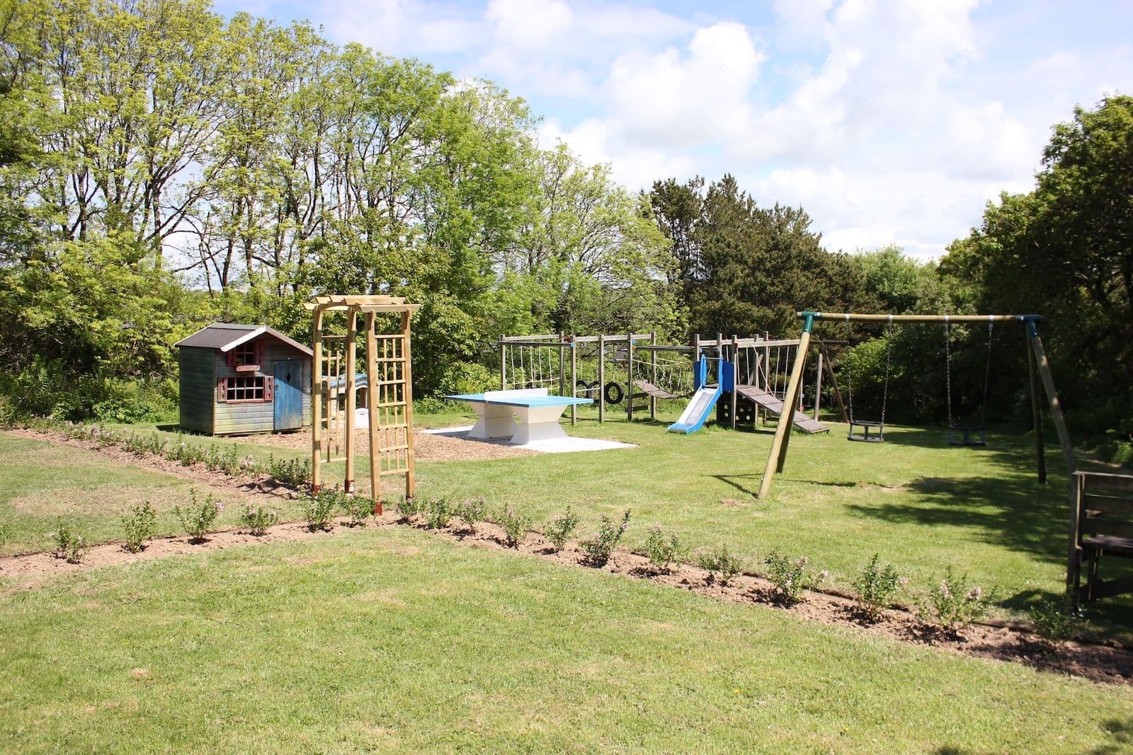 We have an indoor games room with table tennis, a pool table, table football and games machine. The play area has swings, climbing frame and slide and a little house to play in that the younger children just love. We are so lucky to have a recreational field for the dogs to run in or children to play football, fly a kite and other games. Our wild flower meadow and woodland walk offers an opportunity to see the diverse wildlife we have here.
