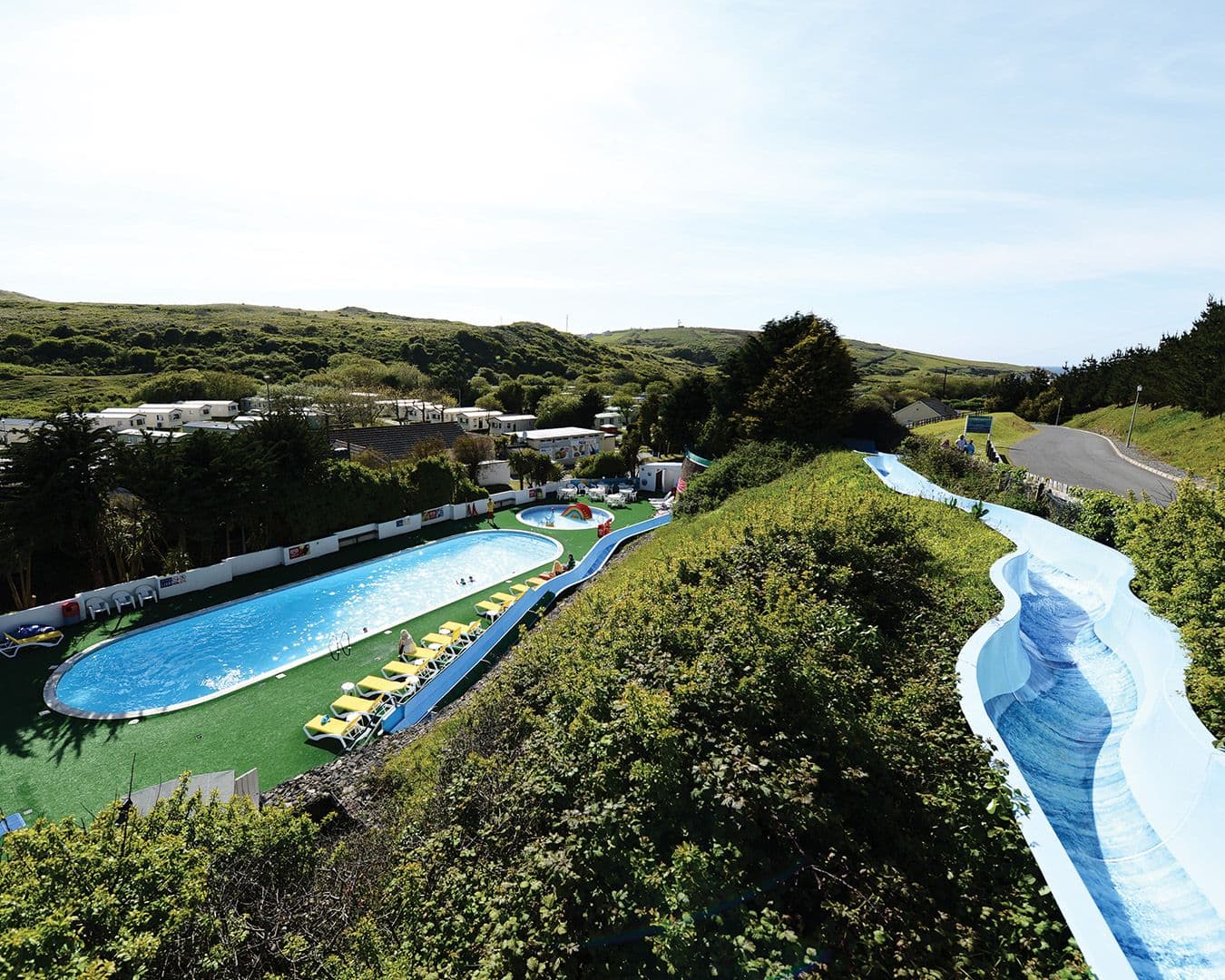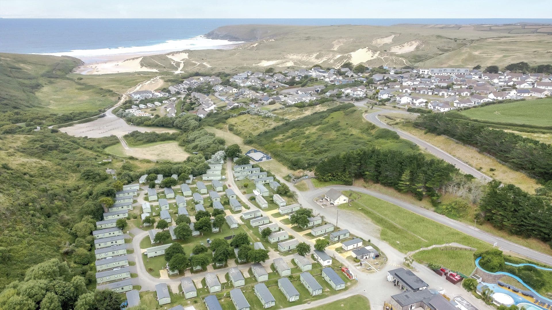 Holywell Bay Holiday Park offers sandy beaches, heated pool, 300-foot waterslide, surf lessons, kayaking, adventure playground, tranquil valley, and family fun.