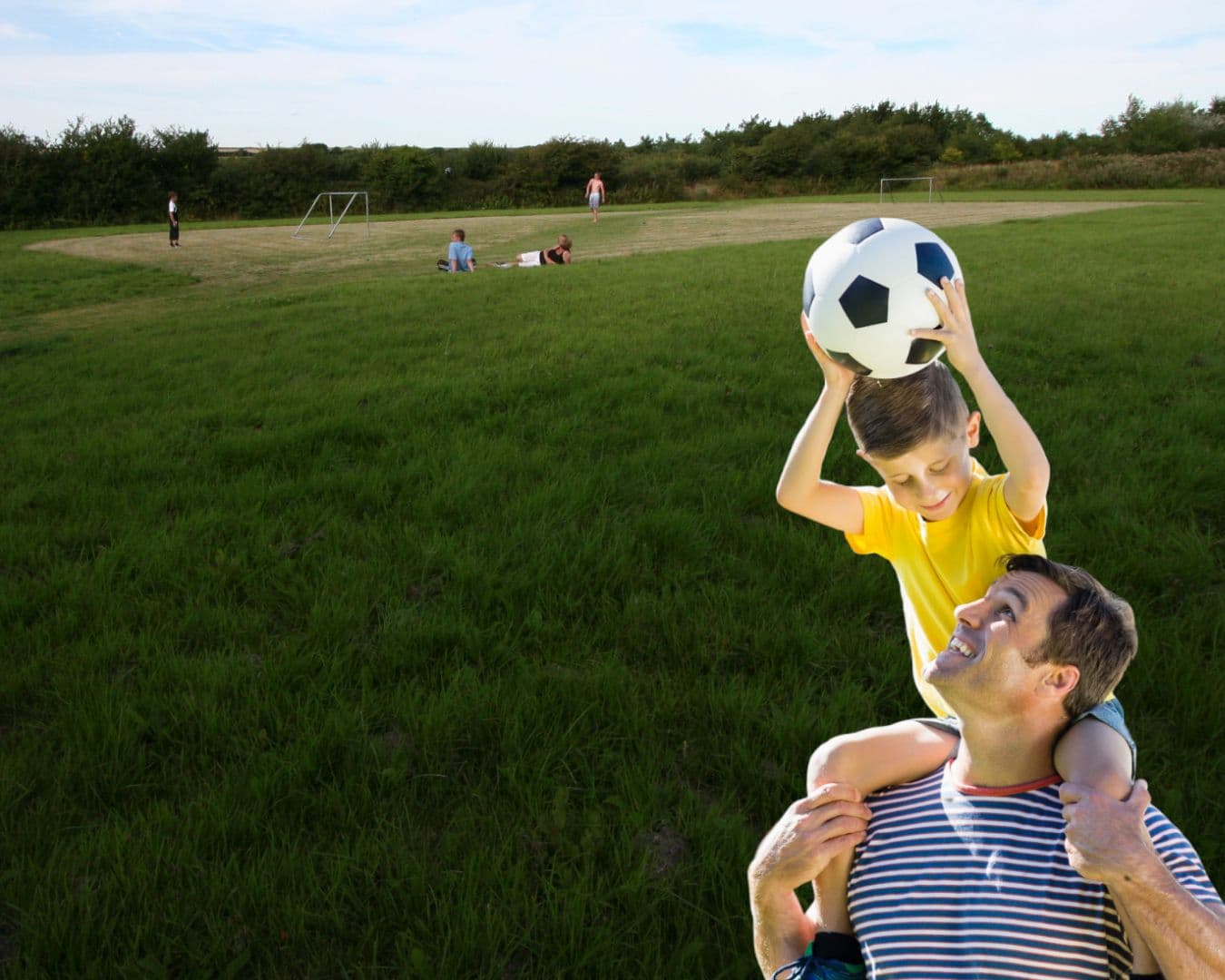 The holiday park has plenty of recreation space, with goals for playing football and plenty of space for other activities such as flying kites. All within the holiday park grounds.