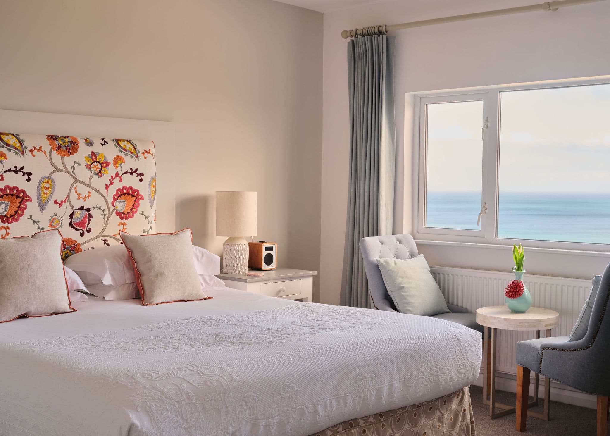 Boskerris hotel is a family run oasis with 15 individually decorated bedrooms. Our boutique hotel is in a unique position with the decked terrace being the perfect vantage point to admire the views across St Ives Bay.
