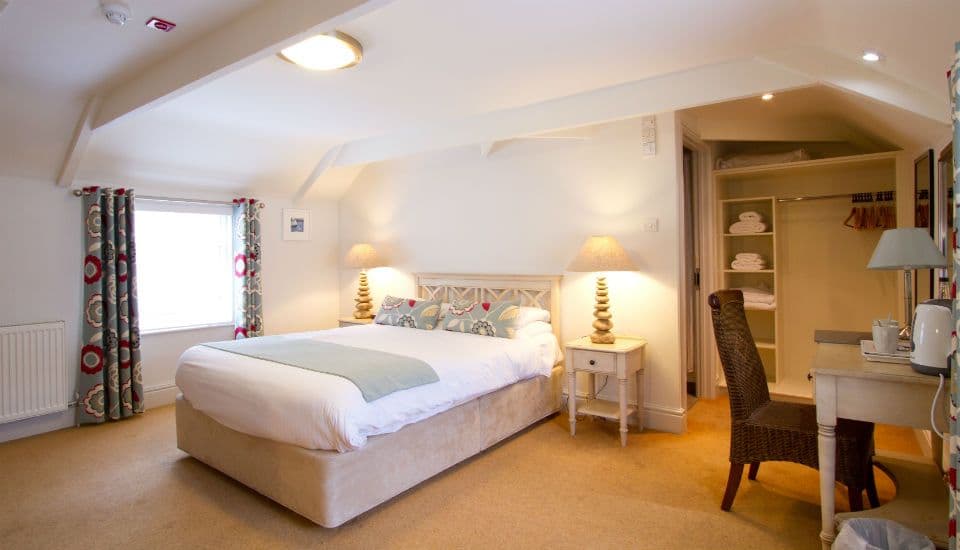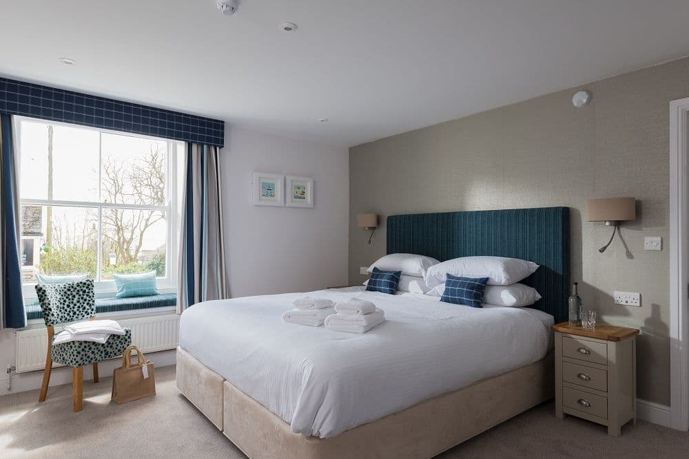 The inviting guest bedrooms are located both above the 150-year-old pub and in its delightful Georgian townhouse, which lies on the harbourside just in front of the inn. Each bedroom is en-suite and adorned with unique character features. Superior and Suite rooms enjoy harbour and sea views.