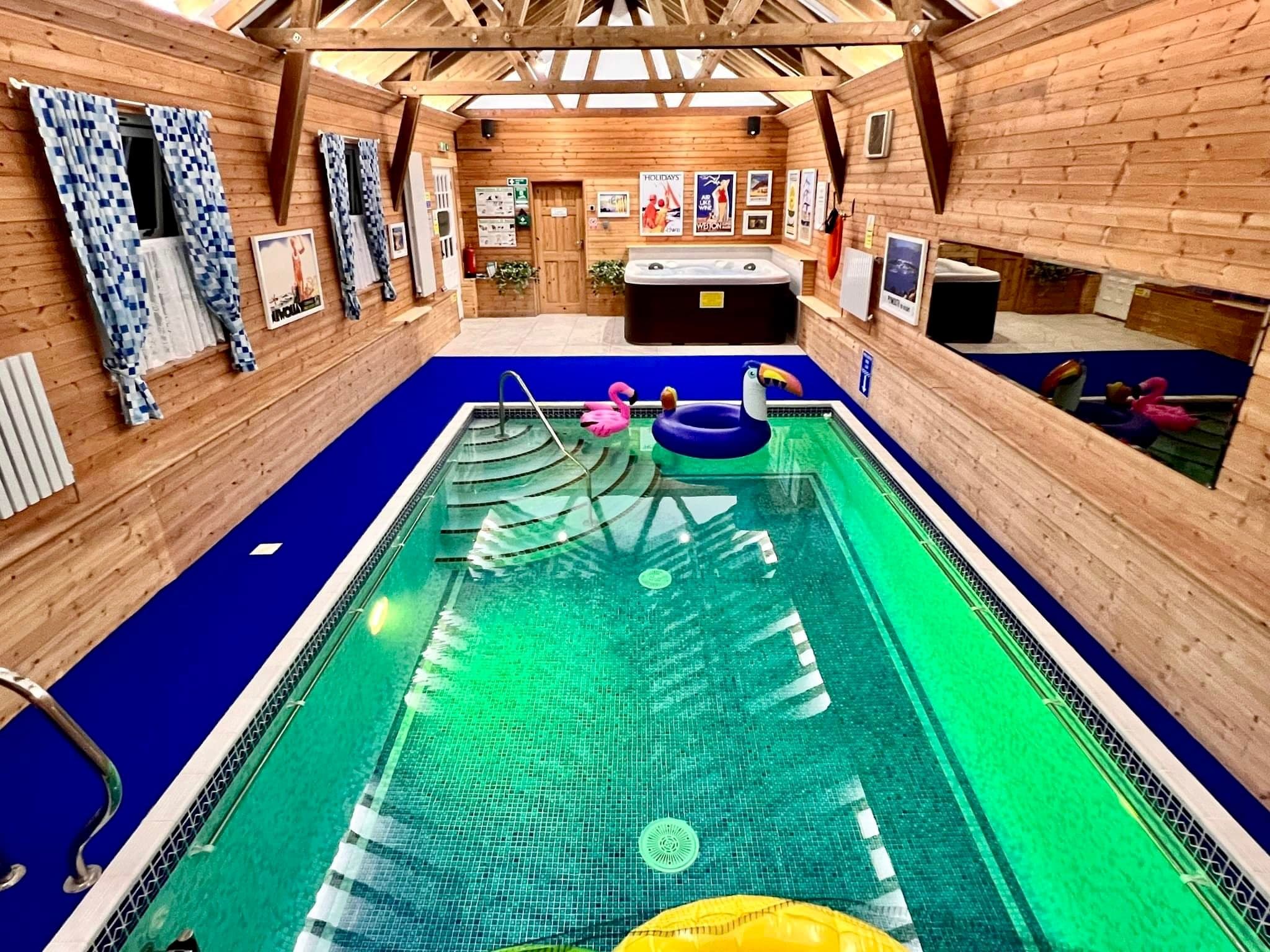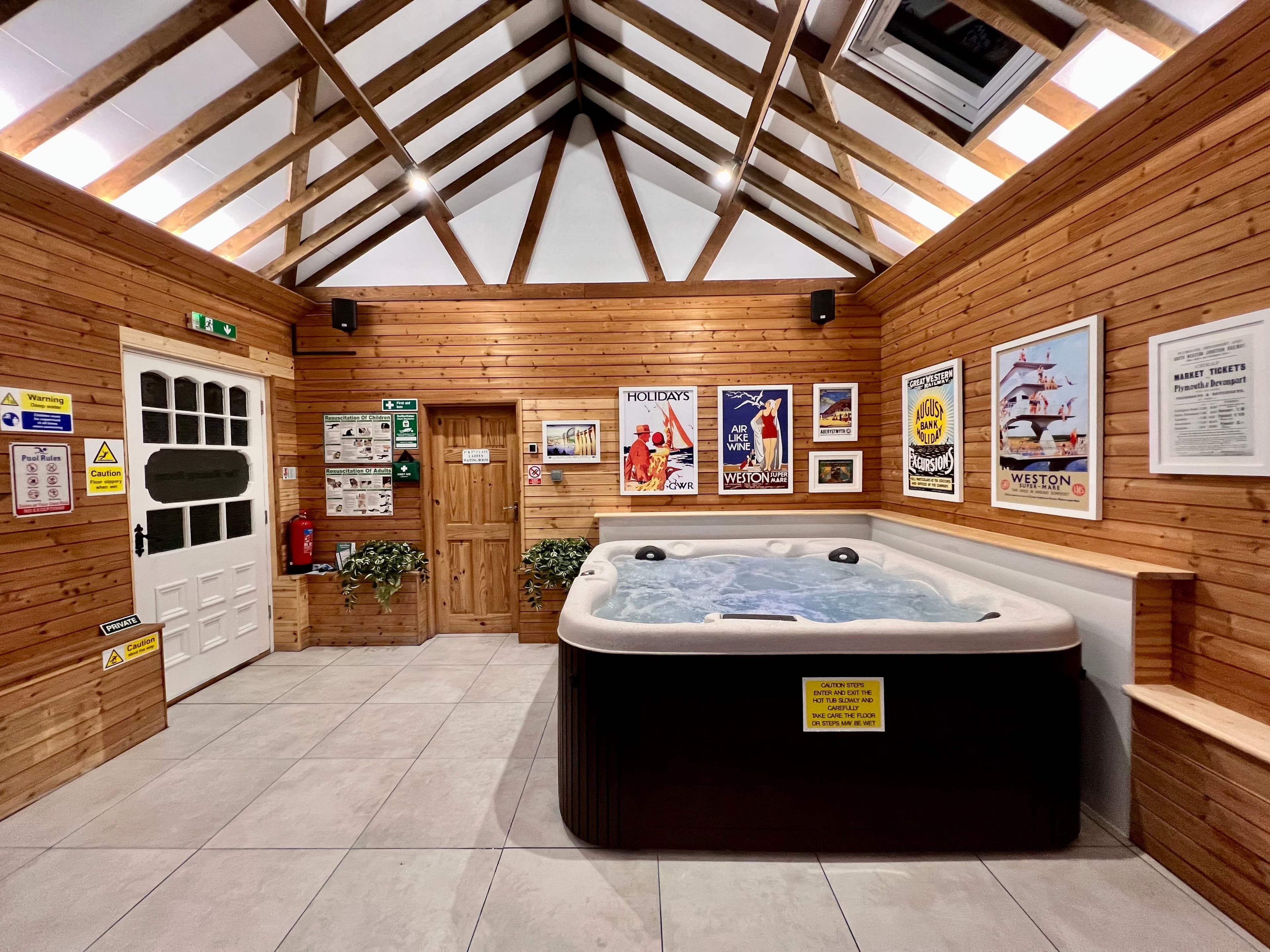 The Waiting Room Pool is a heated indoor swimming pool with six person hot tub set inside The Waiting Room on the original passenger platform at Old Luckett Station. With a private changing room offering two changing cubicles, WC and sink and shower cubicle along with a baby changing table. Free Wi-fi and bluetooth speakers, ample private parking on the site which once would have been the location of train tracks.