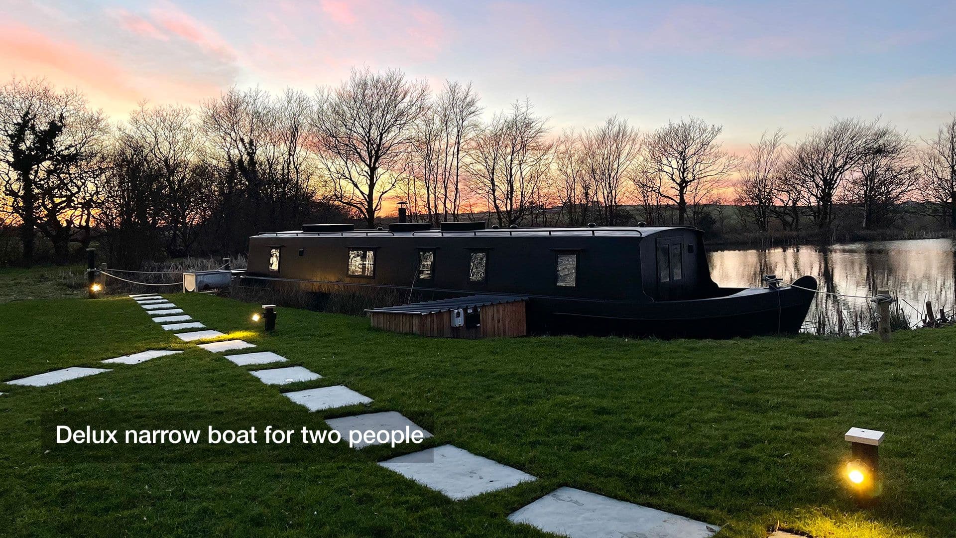 A luxury floating suite for two, permanently moored on the bank of a secluded lake in North Devon. Just up the gangplank is its own Bathhouse Boudoir with decadent roll top bath from which to gaze out over the lake. •Deluxe floating suite for two with cosy woodburner •Bath house boudoir with roll top bath •On the banks of a gorgeous fishing lake teaming with wildlife