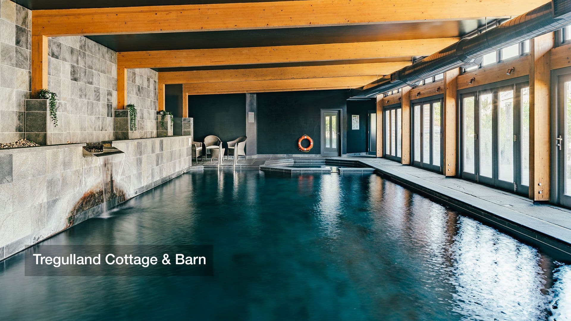 Home and celebrate in the finest eco-chic luxury, with an indoor freshwater pool. Set in a secluded valley bordered by a wildlife reserve, the river Inny and our own carp filled fishing lake. • Eleven en suite double bedrooms • Outdoor wood fired hot tub • Indoor freshwater swimming pool and steam room • Cinema & table tennis rooms • Playground, extensive grounds & fishing lake