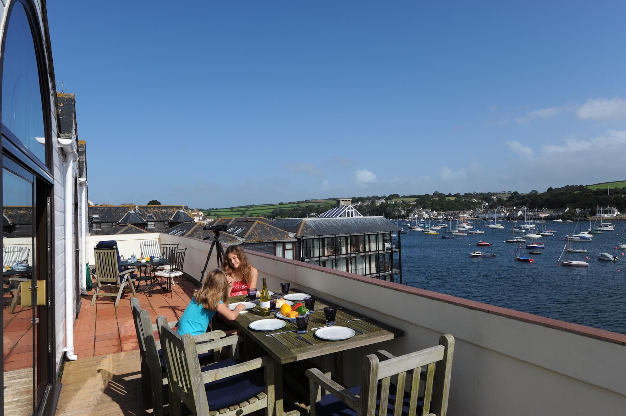 Magnificent, luxury waterfront Penthouse that sleeps six in Falmouth. With a 50ft balcony commanding sensational views across the Fal Estuary and Roseland Peninsula. Packet Quays is an elegant and exclusive waterfront development, originally built in the 17th century as home to the famous Falmouth Packet ships, carrying mail to Europe and the Caribbean. This stylish maritime location is conveniently situated just three minutes walk from Falmouth town centre, the Royal Cornwall Yacht Club and ferries to St Mawes and Flushing.