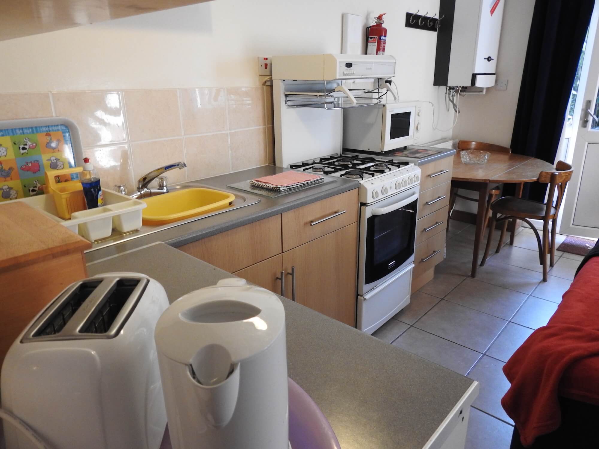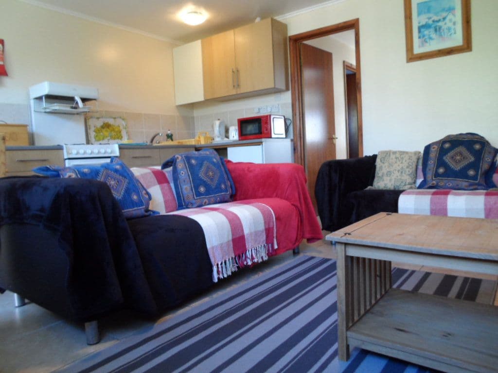 The bungalows have three bedrooms; a dormer bedroom with a double bed and on the ground floor a double bedroom and a twin bedroom with bunk beds. There is an open plan living and kitchen/dining area, equipped with colour TV, fridge, microwave and the usual kitchen appliances. Electricity is supplied via a pay as you go coin meter and gas for central heating, cooking and hot water is included in the price.