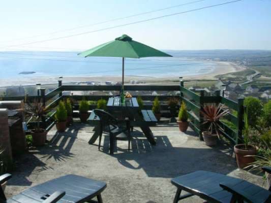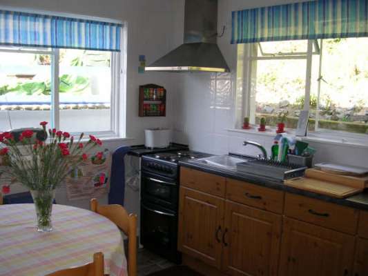 On the hillside overlooking the western end of Marazion. Adjoining the owners detached bungalow which has a garden at the front with parking space at the foot of a short flight of steps which leads to each bungalow which both have a sun terrace and built in barbecues. Fully equipped, colour T.V., video, fridge, cooker, microwave etc.