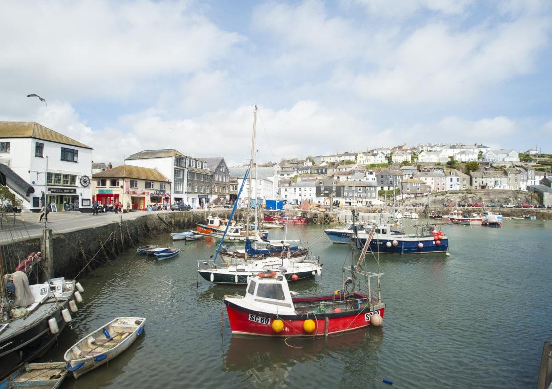Mevagissey is a working harbour with fishing boats coming and going on the tide. It doesn't have a beach as such but nearby you have Portmellon and Gorran Haven.