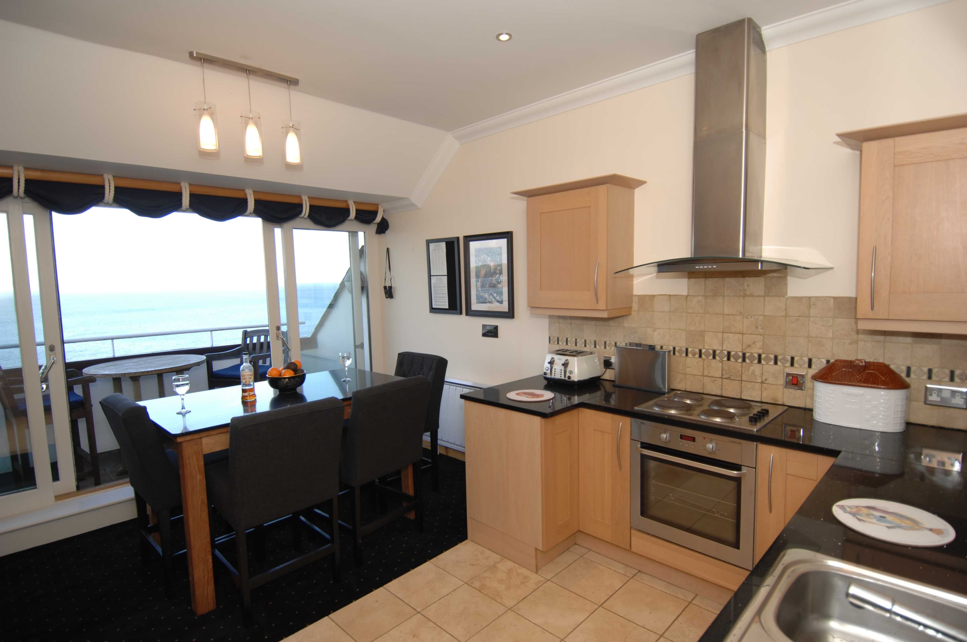 Spectacular luxury holiday apartment in Cornwall. Awarded 5 star rating. Luxury interior with private balcony and sensational sea views, in Nare Court, Mevagissey.