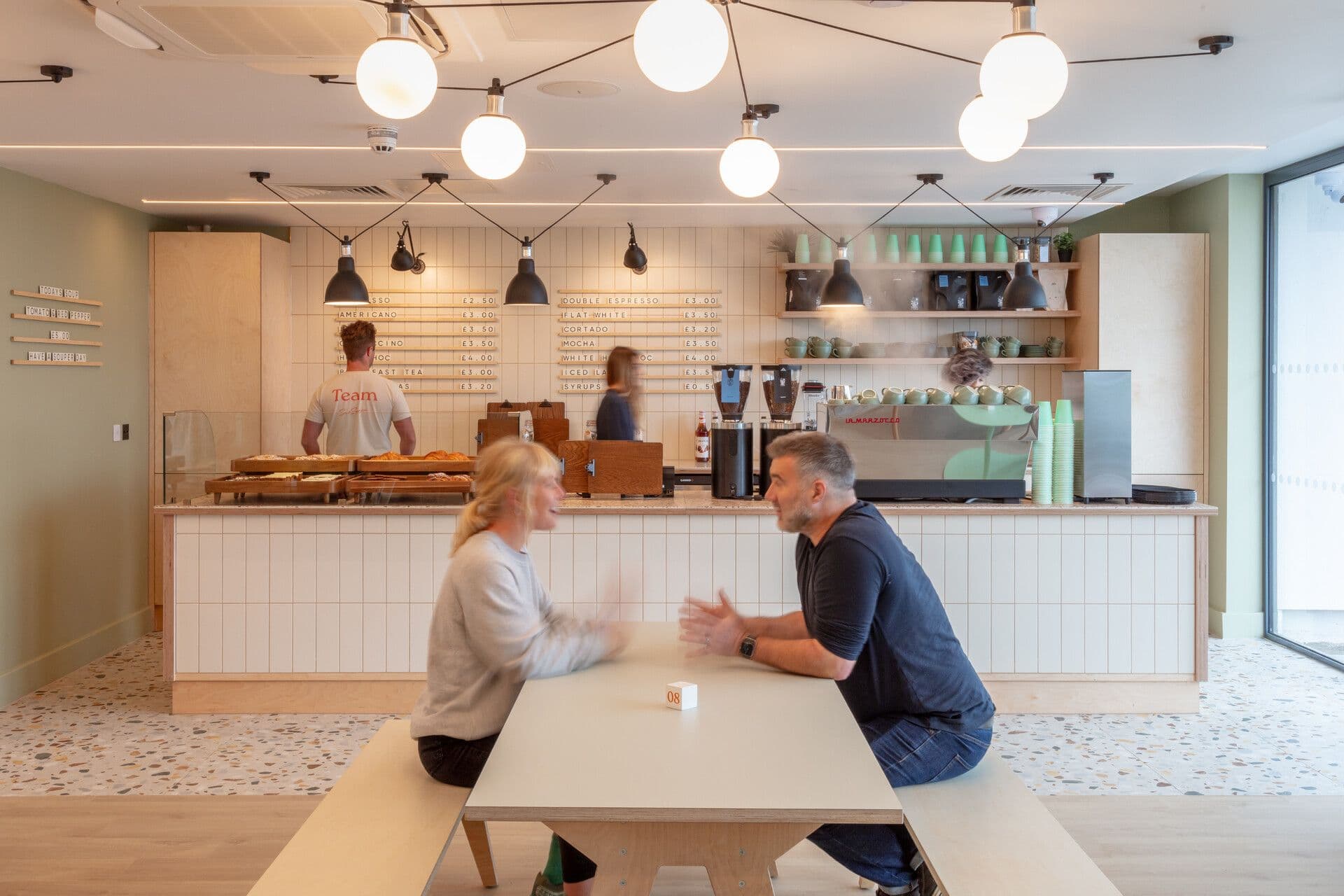 Vibrant shared spaces indoors and out bring a lift to remote working or informal catch-ups, while freerange roaming in the grounds, a maze and indoor and outdoor play areas for the kids ensure everyone’s happy, however they’re spending their time.