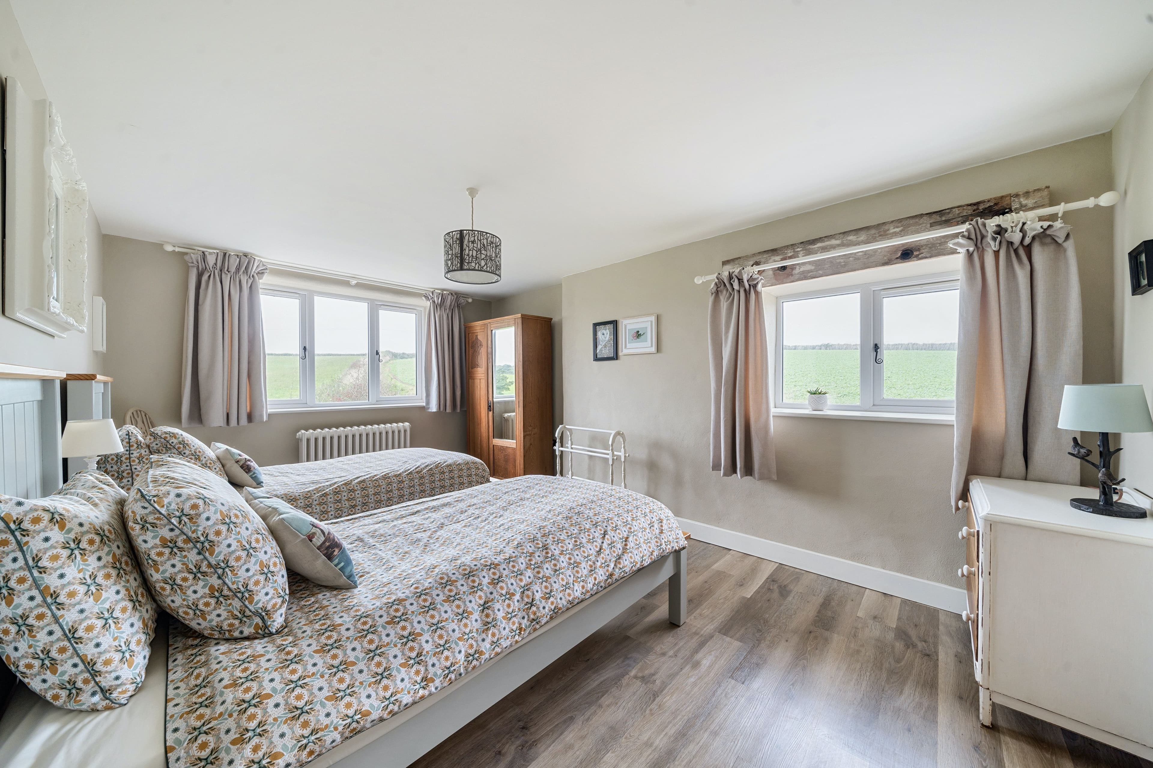 Opposite the master is another bedroom with two single beds, and an en-suite shower room.