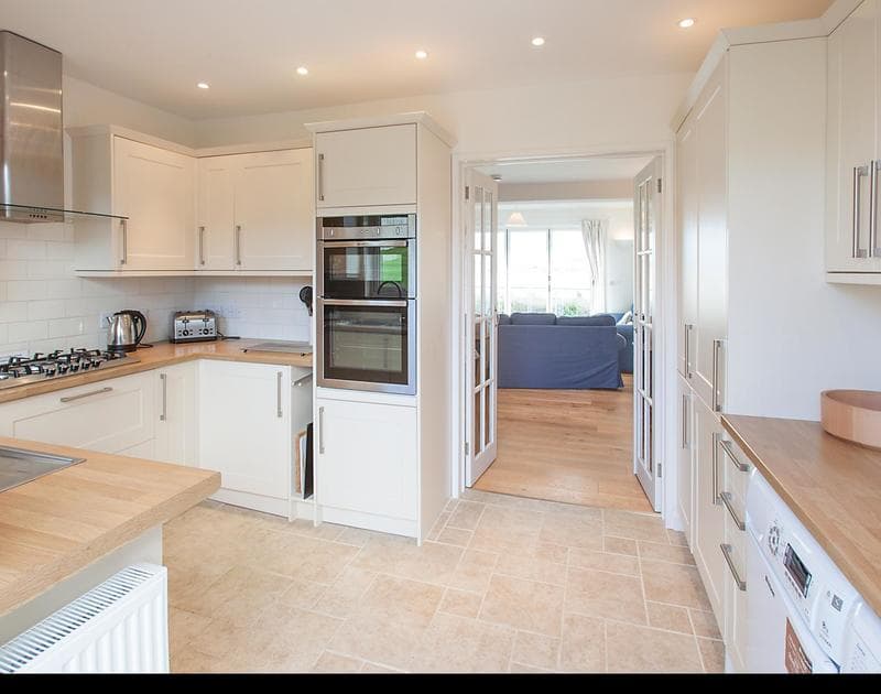 The fully fitted, well equipped kitchen has plenty of storage space and there is a fridge freezer, dishwasher, double oven, microwave, gas hob with 5 rings including a wok ring, washing machine and tumble dryer. French doors lead from the kitchen to a very large enclosed garden with a timber decked area, garden furniture, BBQ, sun loungers and a hot and cold outside shower.