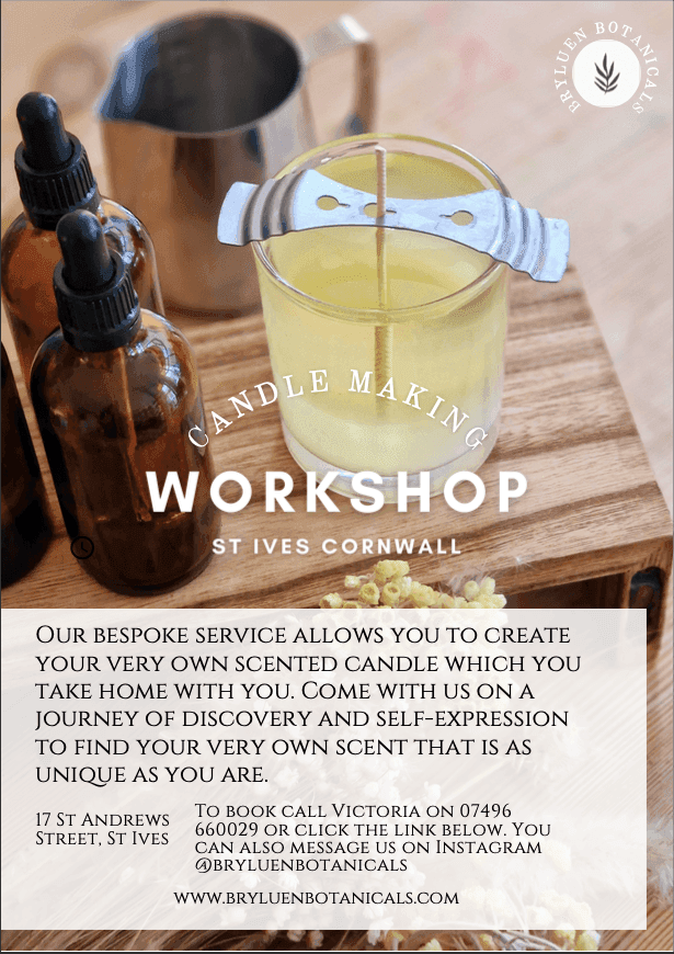 Bryluen Botanicals is a candle workshop located in St Andrew's Street in St Ives providing luxury pure essential oil soy wax candles. Every ingredient in our candles grows naturally, from the petals of the flowers and the rinds of the fruit to the soy wax and pure cotton wicks.