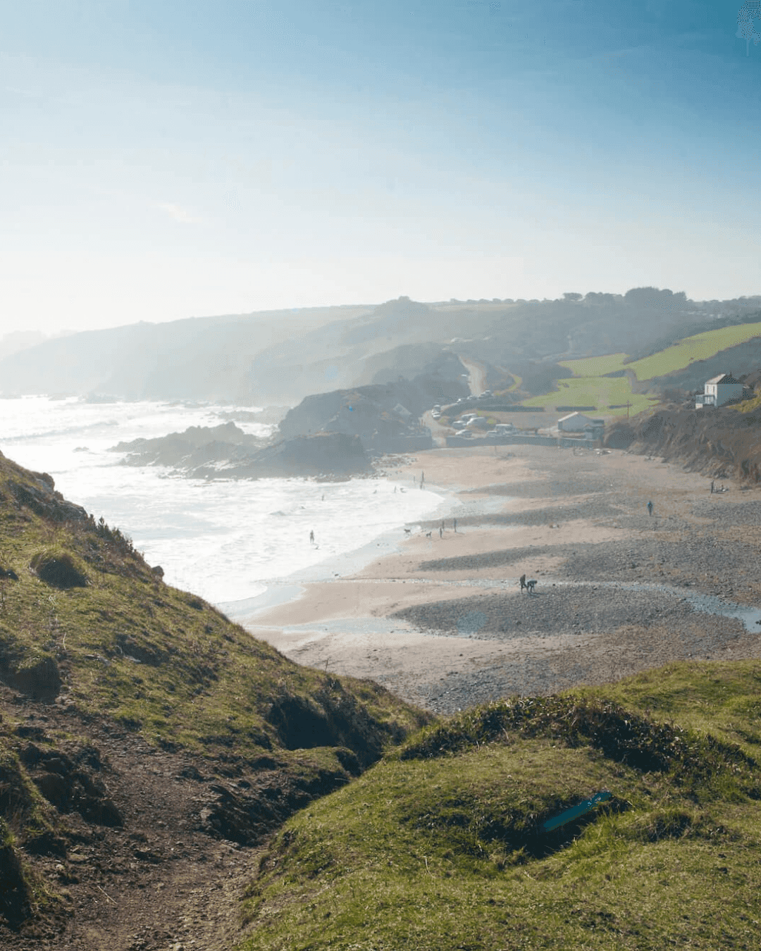 During the summer months basking sharks can be seen close to the shoreline of this beautiful beach that is part of the Lizard National Nature Reserve. Recognised for its geological features it’s the only beach in Cornwall to obtain ‘nature reserve’ status due to its extraordinary geology, including exposures of gneiss in the cliffs, red serpentine pebbles, and other stones not found anywhere else in the UK.