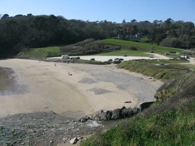 Porthluney Cove is a privately owned, secluded family beach with a large expanse of golden sand that's popular with the locals. South facing, in front of Caerhays Castle and Gardens, the beach enjoys a striking backdrop. There's plenty of room for beach games and exploring the rocks on the west side at low tide. The beach is excellent for swimming .