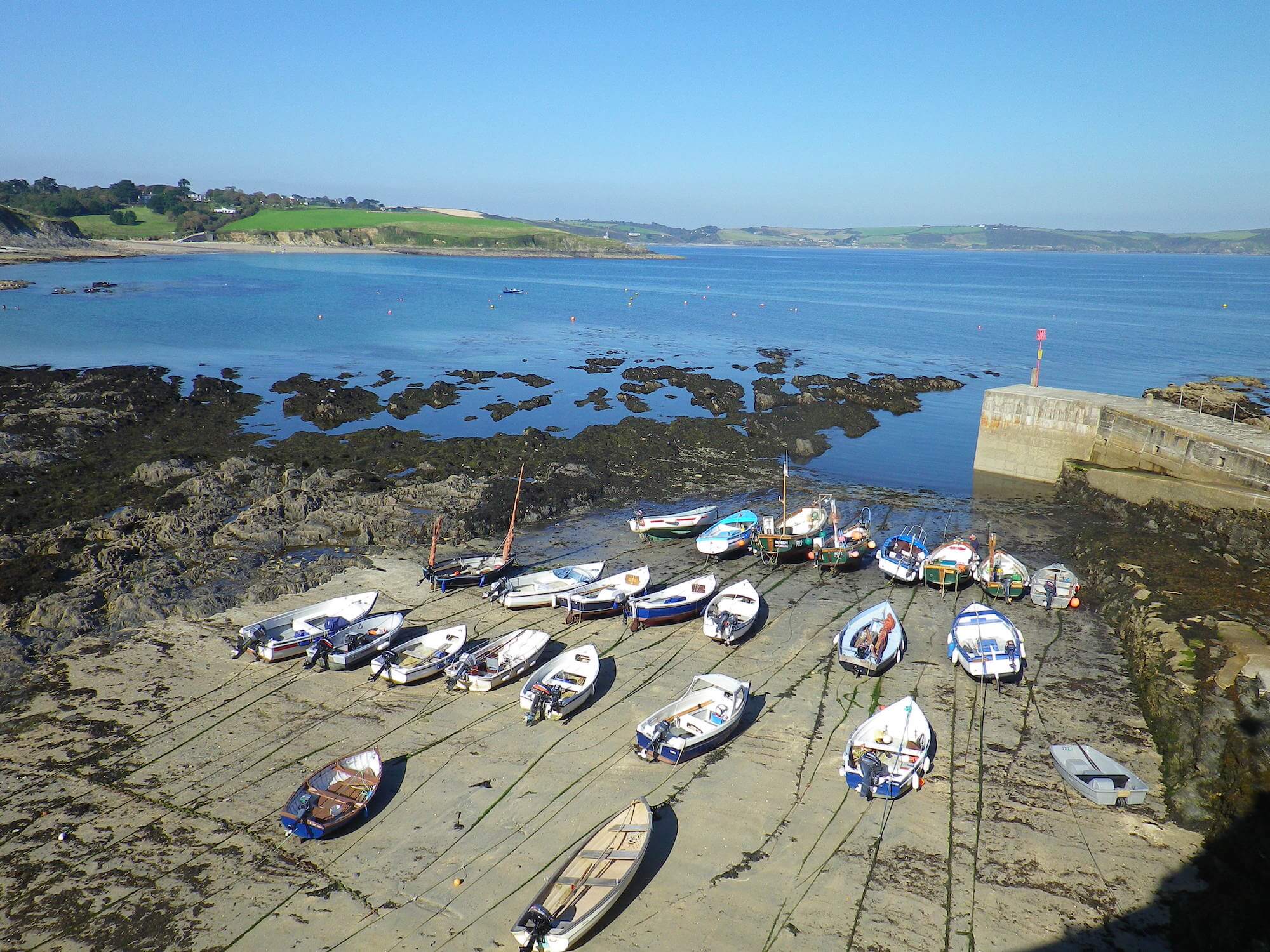 Sheltered within Gerrans Bay, Portscatho, which means, ‘Rowing Boat Harbour’ in Cornish, is mainly rocky, with sandy patches, stretching all the way to the golden sands of Porthcurnick Beach at low tide. The South West Coast Path runs through the small village with its quaint quay and old stone jetty, still home to several local fishing boats.