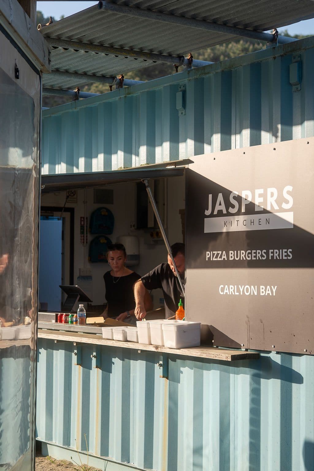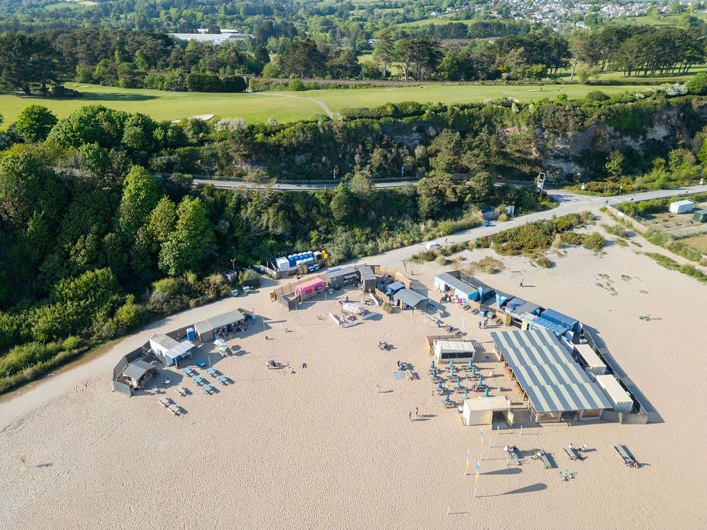 Shoreside is a seasonal coastal pop-up beach venue at Carlyon Bay offering a collection of street food, live entertainment, water sports and wellness activities.