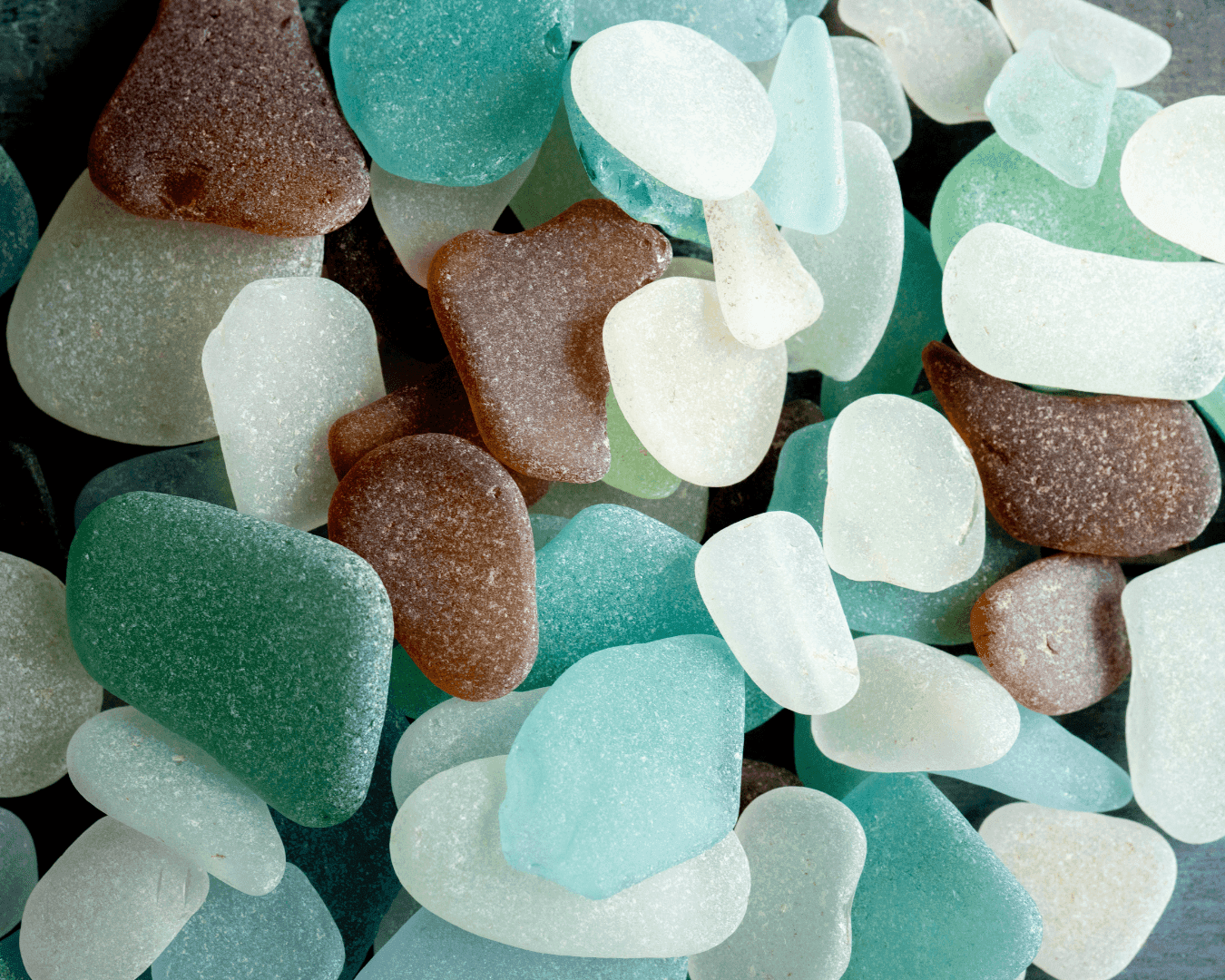 You can often tell how old sea glass is and where it comes from by the colour. White, aqua, green and brown sea glass usually originates from milk, beer, wine, and soda bottles. While deep cobalt blues are likely to have come from glass jars used for ink wells and medicine jars used by doctors of the 1890s. Pink, lavender, purple, and lime green shades are likely to have originated from perfume bottles and art glass. While the rarest colour you can find, orange, is usually from red warning lights used on ships as well as decorative vases and tableware.