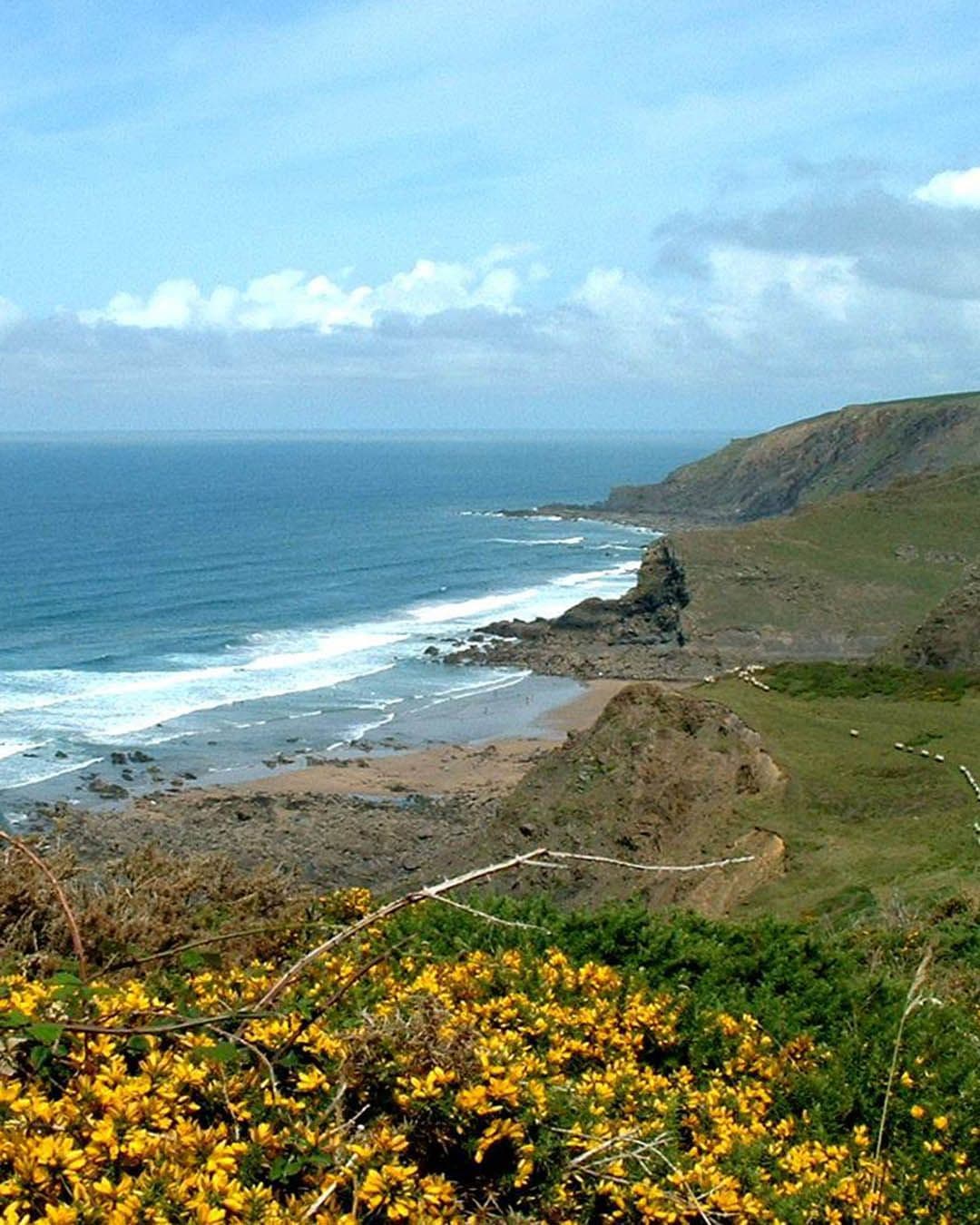 A high plateau of sandstone and slate meets the sea here in sheer cliffs up to 475 feet high. Cut through by streams, the serrated coastline makes for tough walking on the South West Coast Path, but it's not a National Landscape for nothing!