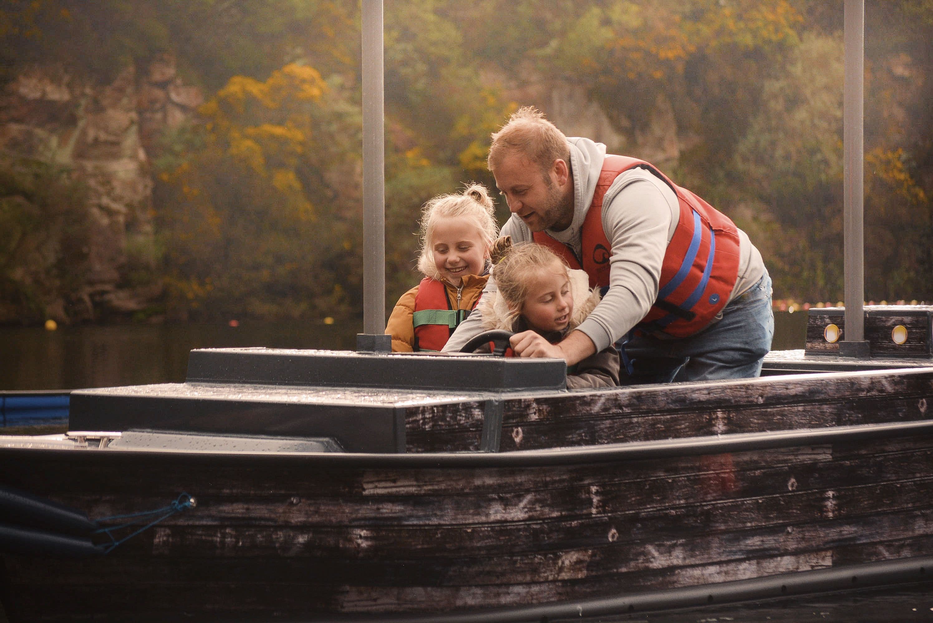 Our E-boats will be charged and ready for you to take control and voyage around our lake, hone your skills using our boat handling area and then explore the waters edges to learn about the geology of the cliffs, how the granite was quarried and what it was used for, as well as finding out about the vast array of species that we now have cohabiting with us.