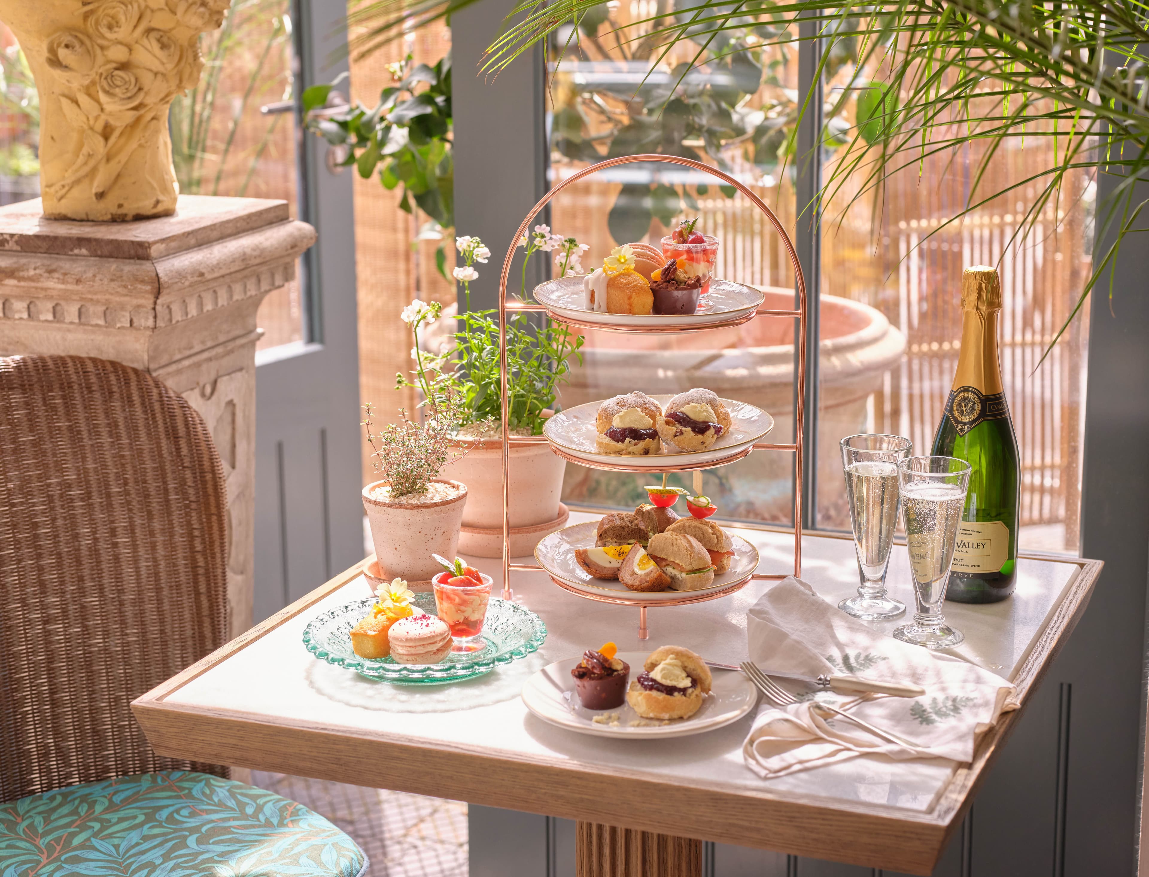 Afternoon Tea is served in the elegant Orangery restaurant. A classic three-tiered stand for two, adorned with all manner of delectable fancies and moreish savouries. Flavours are inspired from the Nursery, neighbouring farms, and the turn of each season.